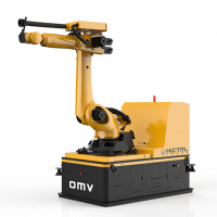 匯聚自動(dòng)化OMV智能復(fù)合型機(jī)器人采用麥克納姆輪全向移動(dòng)底盤+重型六軸工業(yè)機(jī)械臂的形式,搭載3D打印頭,通過慣性導(dǎo)航系統(tǒng)和視覺定位系統(tǒng),實(shí)現(xiàn)不同建筑布局的墻體打印.