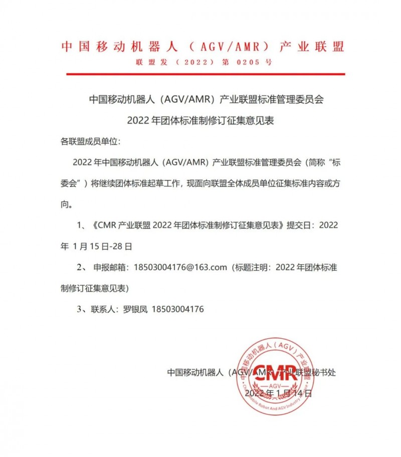 CMR產業聯盟2022年團體標準制修訂意見征集公告