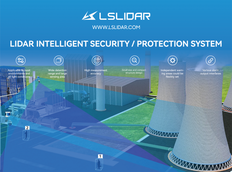 鐳神智能防入侵安防系統采用自主研發的3D激光雷達,獲取監測區域內的實時三維點云數據,通過用戶需求所定制的算法,全天候偵測障礙物的入侵情況,追蹤障礙物軌跡,輸出報警信號,保障監測區域內安全。可有效幫助工業重地安全防護。