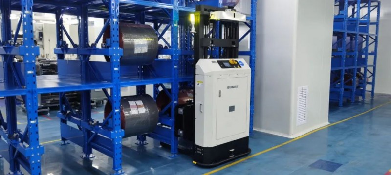 據(jù)了解,在涂布分切的前段卷料環(huán)節(jié),又包括上設(shè)備與上緩存庫兩個(gè)方面。電池生產(chǎn)節(jié)拍緊湊,設(shè)備對接精度高,創(chuàng)智針對這個(gè)環(huán)節(jié)深度定制研發(fā)了舉升式與叉臂式兩款A(yù)GV產(chǎn)品。叉臂式AGV相當(dāng)于堆高叉車的懸臂,能夠?qū)崿F(xiàn)上設(shè)備及緩存庫的高精度全自動(dòng)對接。