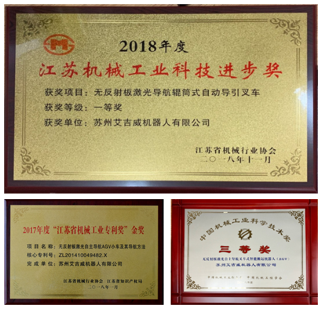 軟件算法方面,艾吉威基于自主可控的研發能力,最早在行業內研發了首個無反射板激光導航技術,使AGV機器人具備感知環境、適應環境的屬性。同時在AGV的深度學習、復雜場景三維建圖、算法定位、數據挖掘等技術領域做到了持續更新換代。在此基礎上結合人工智能技術以及上層算法的應用,實現整套智能整廠解決方案的研發。該導航技術曾獲得2018年度江蘇省機械工業科技進步獎一等獎、 江蘇省機械專利金獎、2019年度中國機械工業科學技術三等獎。