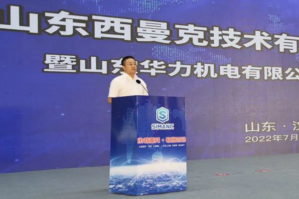 山東華力機(jī)電有限公司董事長郭永旭先生發(fā)表致辭,對(duì)出席慶典的各位嘉賓表示熱烈的歡迎。郭董提到,山東西曼克技術(shù)有限公司在高書記、李縣長等縣直各部的大力支持下終于在今天建成開業(yè)投產(chǎn),該項(xiàng)目第一期新建高標(biāo)準(zhǔn)廠房70000平方米,即將開建的第二期工程再建高標(biāo)準(zhǔn)“員工之家”樣式的廠房106000平方米,預(yù)計(jì)明年的今天建成投產(chǎn)。郭董對(duì)華力機(jī)電公司從2011年至今的發(fā)展與成就進(jìn)行了總結(jié),他指出,華力機(jī)電從銷售收入只有1億元,通過十年的拼搏到20年實(shí)現(xiàn)銷售收6. 8億元,產(chǎn)品也在不斷地更新?lián)Q代,新技術(shù)新產(chǎn)品不斷涌現(xiàn),并且得到了良好的市場應(yīng)用。郭董表示,隨著西曼克公司的新廠落成開業(yè),有決心有信心更有底氣,把機(jī)器人產(chǎn)業(yè)做強(qiáng)做大,用優(yōu)異的成績,來回報(bào)各位領(lǐng)導(dǎo)、各位客戶、各位供應(yīng)商和各位朋友的大力支持。