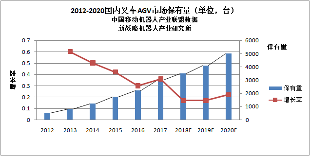 【報告摘錄】在這制造業(yè)需求中,國內傳統(tǒng)叉車依然每年保持著較高的增長,我國叉車AGV機器人在2014年之前市場有3家左右的企業(yè)在銷售,2014之后,叉車AGV企業(yè)雨后春筍,諸多企業(yè)紛紛切入市場,國內AGV叉車保有量突破千臺(套),截止2017年國內運行的叉車AGV達到3000套。預計到2020 年將突破5000臺。