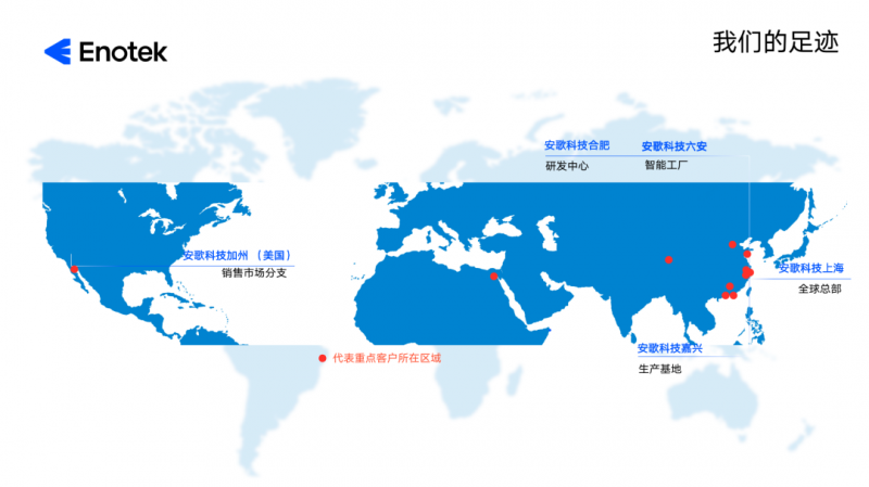 安歌科技Enotek成立于2008年,全球總部位于上海,除了正在建設(shè)中的六安數(shù)智倉儲物流系統(tǒng)智能工廠,在嘉興還建有生產(chǎn)基地,在合肥設(shè)有研發(fā)中心,在美國擁有子公司,業(yè)務(wù)遍及全球20+國家及地區(qū)。2023年,安歌科技還將不斷踔厲奮發(fā),持續(xù)開拓海外業(yè)務(wù)市場,讓“中國智造”走向世界。