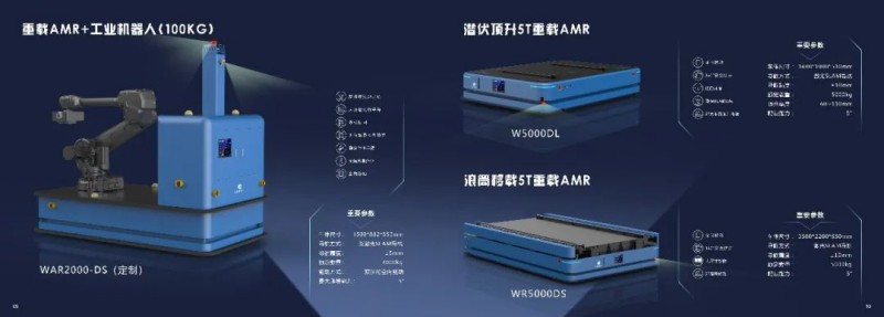 近期,為適應更多的應用場景,井智機器人自主研發(fā)的重載AMR (Heavy-duty AMR)全面上線。井智機器人的重載AMR利用OMS、WMS、TMS、FMS,能夠協(xié)助客戶實現(xiàn)數(shù)字化、智能化的產(chǎn)業(yè)升級。如圖示的WR5000DS,負載最高可達到5000KG,產(chǎn)品定位精確,行駛路徑靈活多變,滾筒移載柔性化程度高,可快速全局部署,適合多種現(xiàn)場環(huán)境。