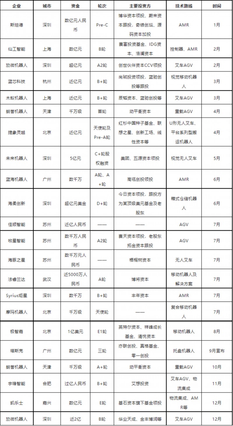 表:2022年工業應用移動機器人行業融資情況(根據企業公開信息整理,如有未完善之處,請指正)