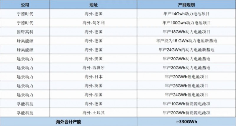 全國動(dòng)力與儲(chǔ)能電池基地產(chǎn)能統(tǒng)計(jì)表5---海外地區(qū)