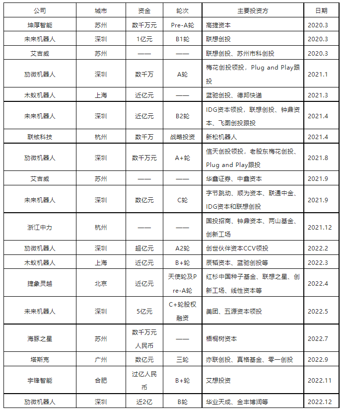 圖表:2020-2022國內無人叉車市場融資情況(不完全統計)