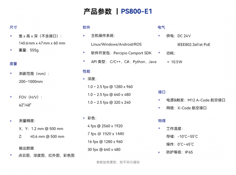 新品PS800-E1即發布日起正式上線,更多樣品信息及獲取,請聯系info@percipio.xyz.
