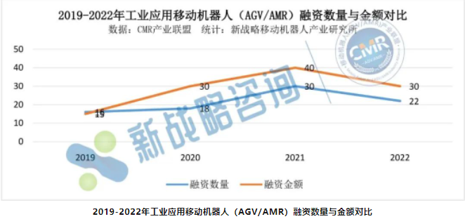根據(jù)CMR聯(lián)盟數(shù)據(jù)統(tǒng)計(jì),2022年工業(yè)應(yīng)用移動(dòng)機(jī)器人行業(yè)共發(fā)生22起融資事件,融資總額超過30億人民幣,無論是融資數(shù)量還是融資總金額方面,都較2021年有所下降。