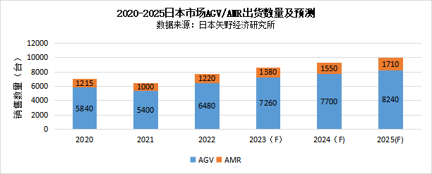 圖表:2020-2025日本市場AGV/AMR出貨數(shù)量及預(yù)測