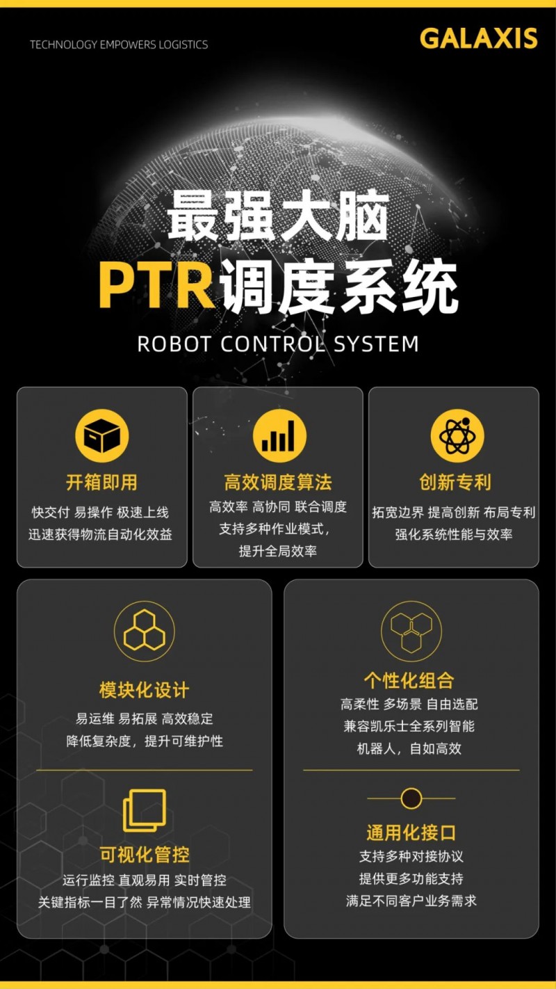 凱樂士PTR調度系統是一款針對物流移動機器人的集中調度系統,其底層模塊化設計、可視化管控、高效調度、通用化接口等,賦能物流移動機器人及解決方案高柔性、高效率、易部署的優勢。