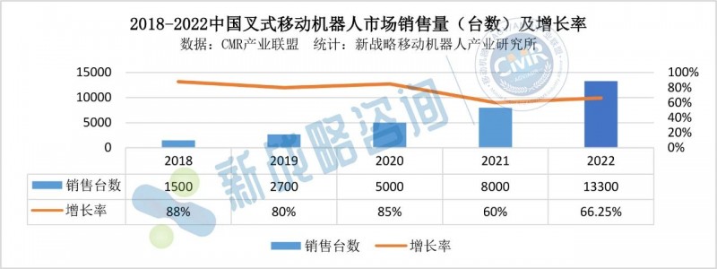 根據CMR產業聯盟數據、新戰略移動機器人產業研究所統計,2023年上半年,中國無人叉車銷售規模同比增長超80%,是AGV/AMR所有品類中增速最快的細分產品之一。