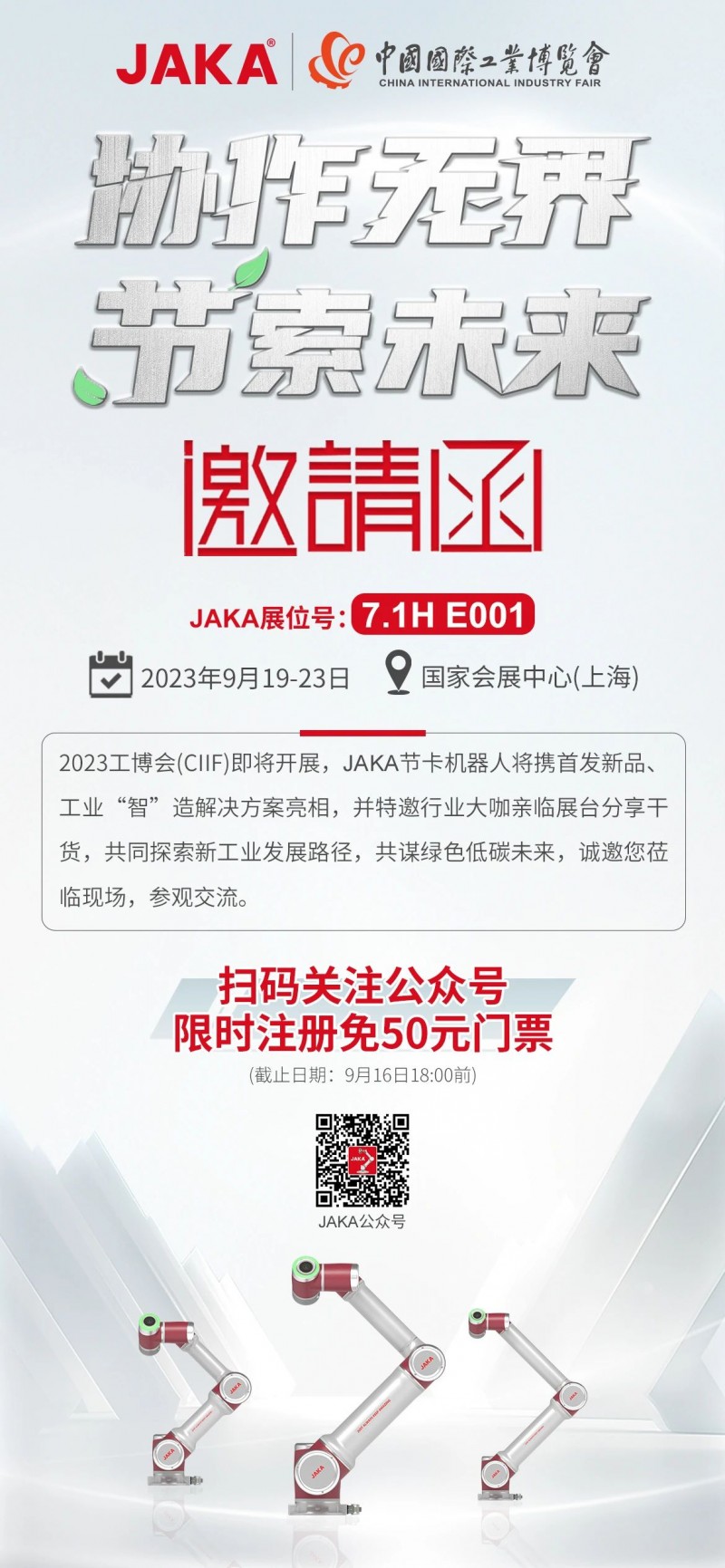 掃描下圖中二維碼,關注節卡機器人公眾號,限時注冊還可免50元參展門票