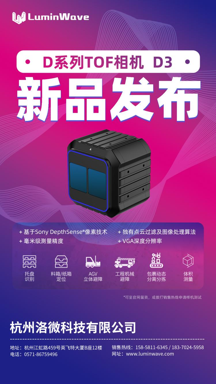 近日,洛微科技對外發布新款高性能D系列 TOF相機D3,這是一款專為工業環境中高性能操作設計的3D TOF智能相機。