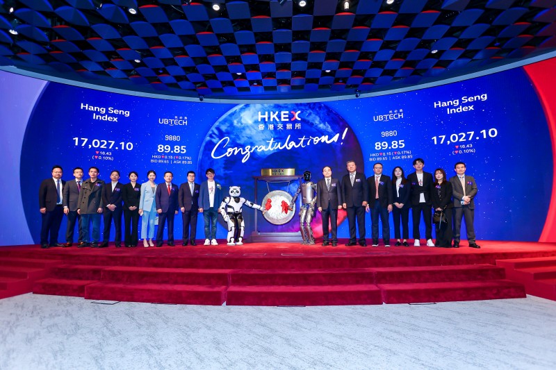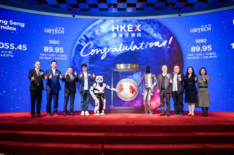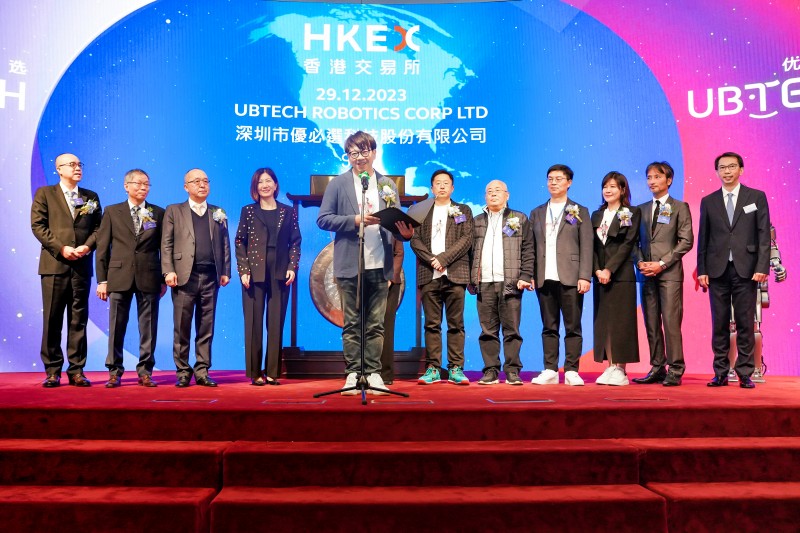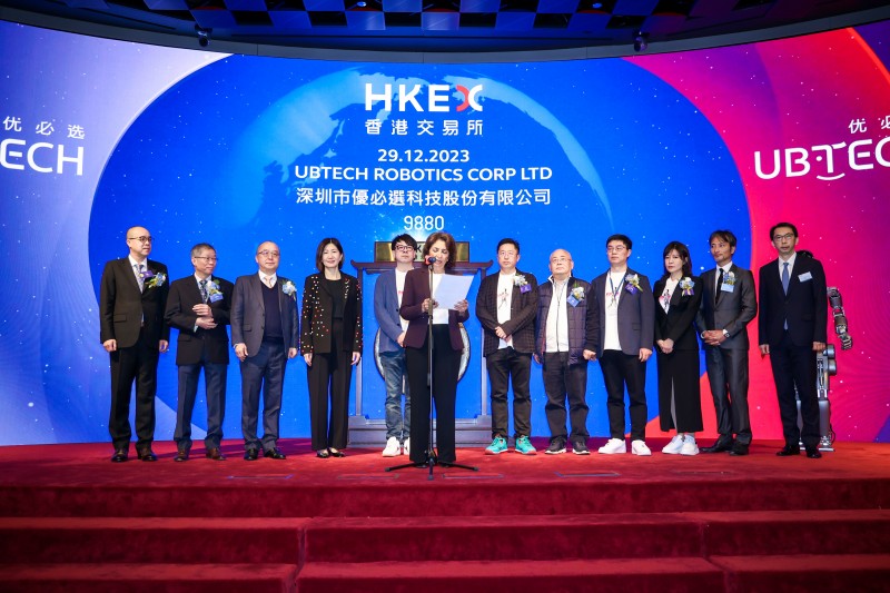 12月29日,優(yōu)必選(股份代碼:9880.HK)正式在香港交易所主板掛牌上市,股價最高達91港元,對應市值約380億港元。香港特區(qū)政府創(chuàng)新科技及工業(yè)局局長孫東、香港特區(qū)政府引進重點企業(yè)辦公室執(zhí)行總裁吳國才,香港聯(lián)交所上市委員會主席Renu Bhatia,香港交易所聯(lián)席營運總監(jiān)陳翊庭,優(yōu)必選董事會主席、執(zhí)行董事兼行政總裁周劍等出席上市儀式,共同見證人形機器人第一股的正式誕生。