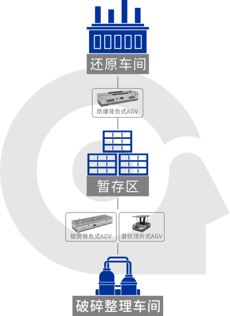 國自機器人針對其生產車間存在安全隱患、生產車間通道狹窄、工序復雜、原料及成品體積和重量大等痛點,為其多晶硅生產還原和整理車間提供智能物流搬運解決方案,使用多臺防爆型背負式AGV、輥筒背負式AGV、潛伏頂升式AGV,連通還原車間、破碎車間與清洗車間,實現多晶硅原材料、空料框、成品硅棒、破碎硅料的智能搬運和存儲。