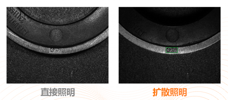 1.刻印深度淺,對(duì)比度極低:復(fù)合光源配合特殊打光角度,提升條碼對(duì)比度;