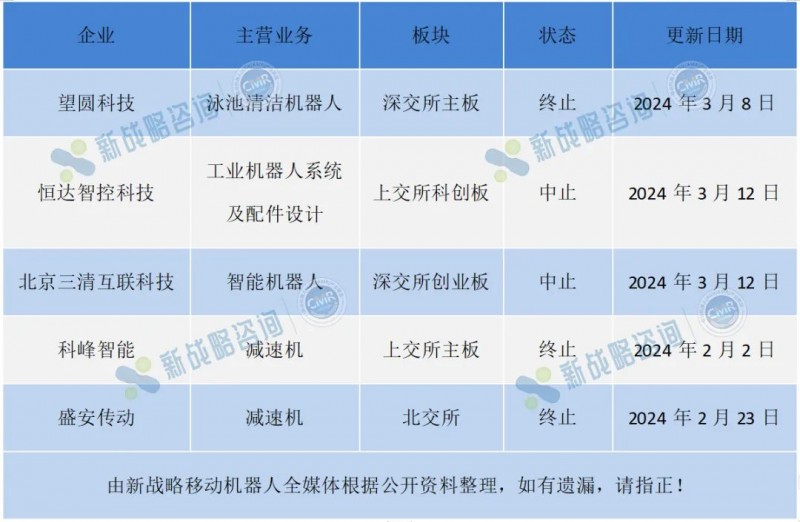 圖表:2024年一季度機器人行業IPO中止/終止情況