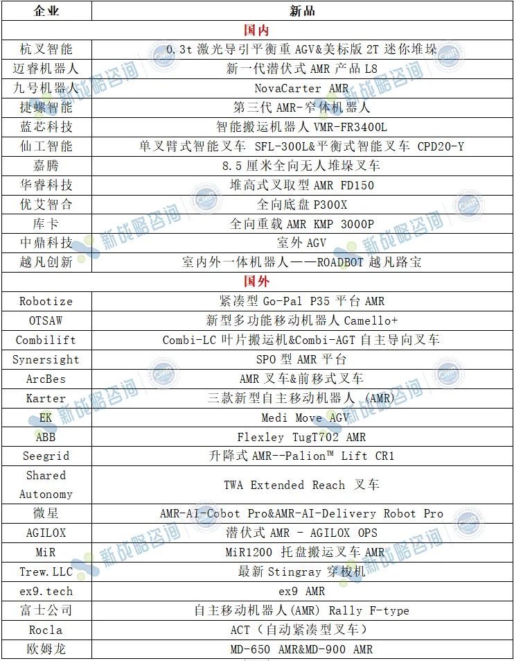 圖表:一季度國內外AGV/AMR企業(yè)新產品(根據(jù)公開信息整理,如有遺漏,請指正!)