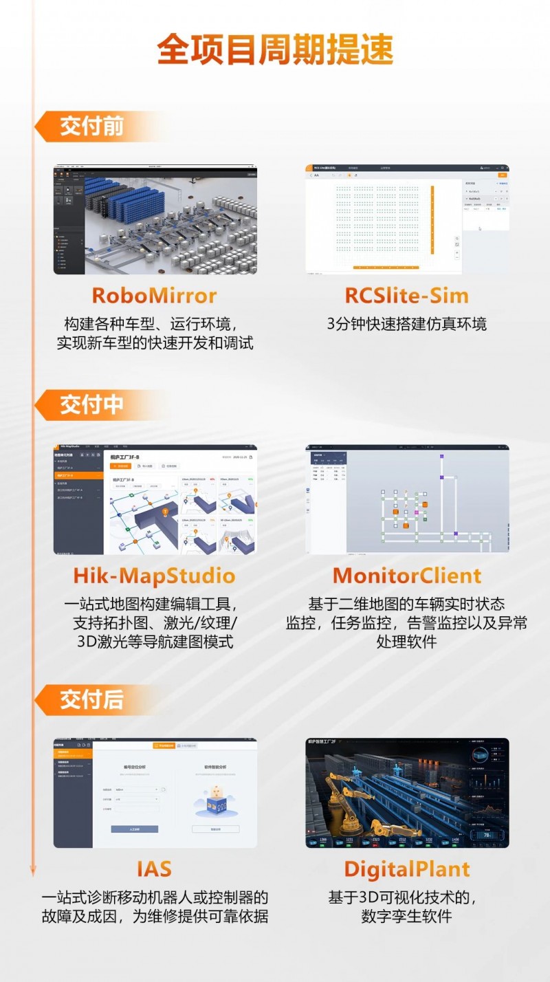 海康機器人為行業用戶提供端到端的解決方案和交付服務,在項目組織、項目過程管理、現場管理、風險管控等方面都已經構建成熟支撐體系。