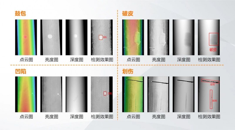通過多相機環視拼接,可實現線纜/管材外表面點云數據的采集,通過VM 3D軟件,可對線纜/管材表面鼓包、破皮、凹陷、劃傷等缺陷進行有效檢出。