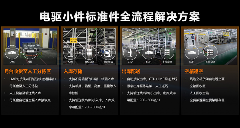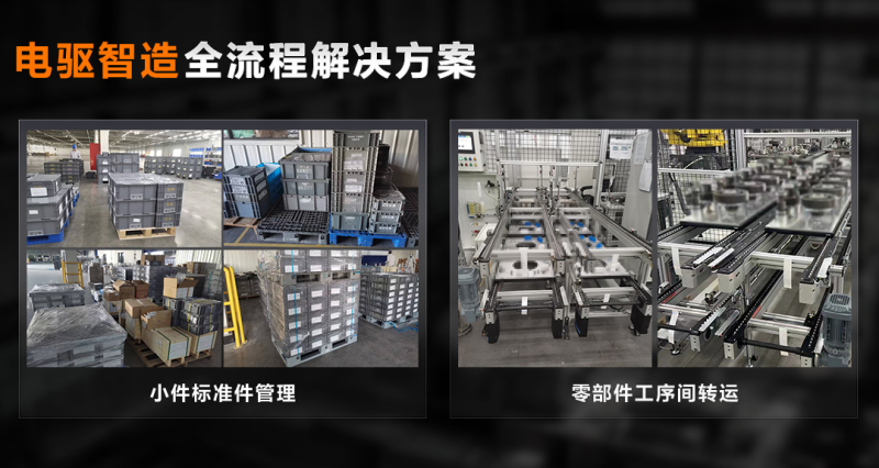 電驅系統作為新能源汽車的核心部件,其制造具有復雜性、工序多樣性的特點。其中,小件標準件種類繁多,傳統方式難以實現精細化管理;工序間轉運對接精度要求高,且隨產能波動,轉運存在勞動強度大、準確性及時性難以把控的問題。