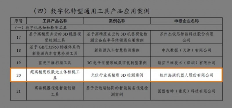 近日,工業(yè)和信息化部辦公廳公布2024實(shí)數(shù)融合典型案例名單,??禉C(jī)器人“超高精度線激光立體相機(jī)工具-光伏行業(yè)高精度3D檢測(cè)案例”脫穎而出,入選其中的數(shù)字化轉(zhuǎn)型通用工具產(chǎn)品應(yīng)用案例名單。