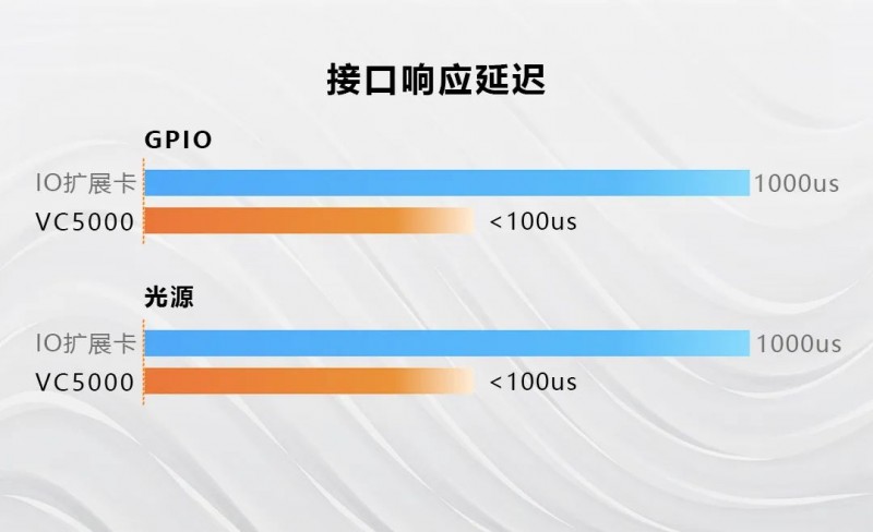 采用高速IO /光源接口,滿足高速視覺處理時(shí)序要求,精準(zhǔn)收發(fā)信號,控制更高效,接口響應(yīng)速度可達(dá)100us以內(nèi)。