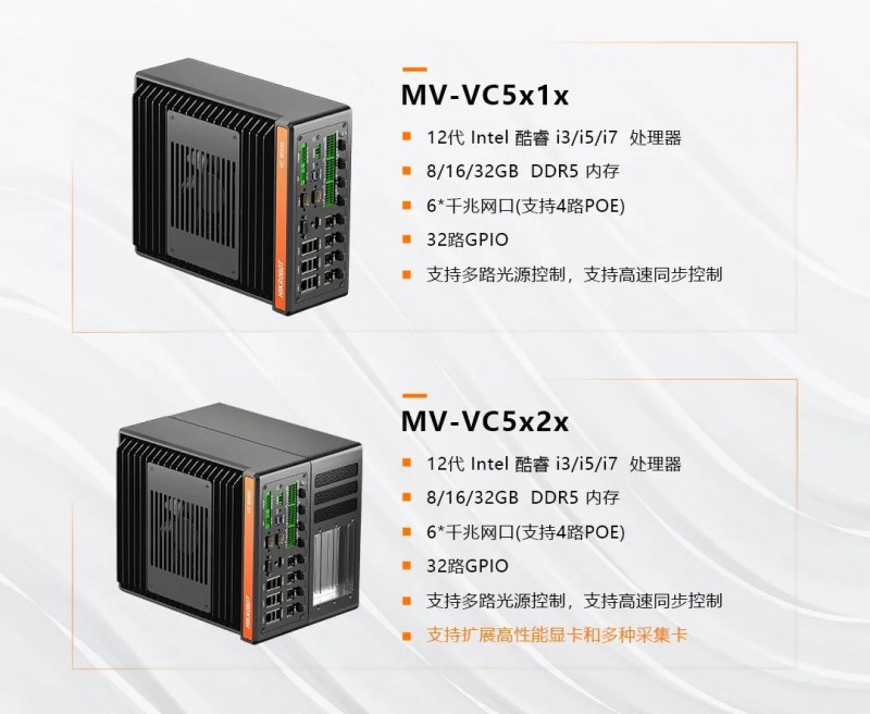 VC5000全系采用12代酷睿處理器,搭配DDR5內(nèi)存,為視覺檢測算法提供強(qiáng)大算力,整體性能提升近3倍,輕松應(yīng)對各類復(fù)雜任務(wù)。