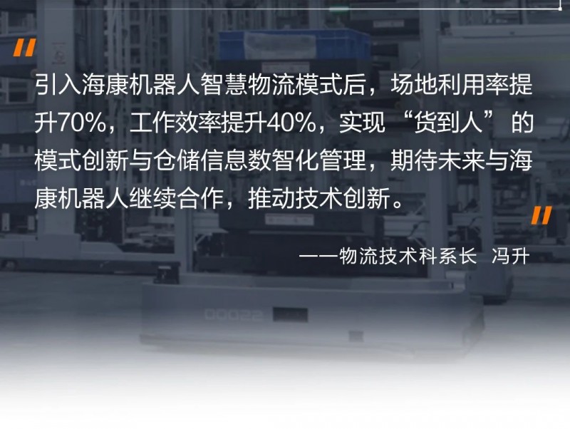 采用料箱機器人+亮燈同步揀選的集成化應用模式,減少了地面存儲面積,降低了作業難度,使操作更簡潔、效率更高。