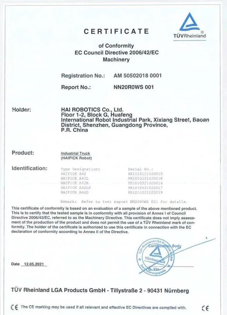 作為歐盟公認的準入認證,CE認證被視為制造商打開并進入歐洲市場的“通行證”。此次庫寶機器人系列產(chǎn)品成功通過CE認證不僅證明了海柔創(chuàng)新庫寶機器人優(yōu)秀的安全性能,更是標志著海柔創(chuàng)新全球化發(fā)展邁入了一個新的階段。