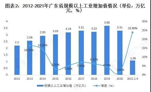 2021年1-4月,廣東規模以上工業增加值1.09萬億元,同比增長23.9%,兩年平均增長5.5%。