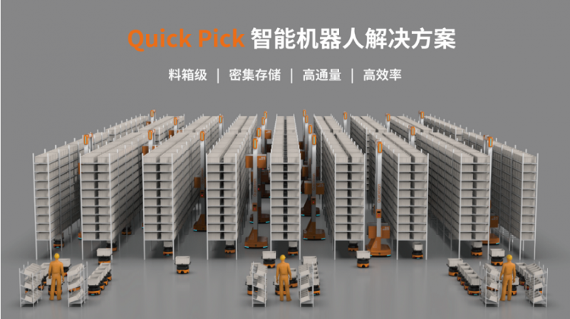 快倉2020年發布的全球首創Quick Pick智能機器人解決方案,實現了“密集存儲+貨到人揀選”的更優使用組合,有效解決了“超高出入庫流量”要求下“拆零揀選及海量SKU退貨”人工作業效率低的痛點,其特點是料箱級、密集存儲、高通量、高效率。
