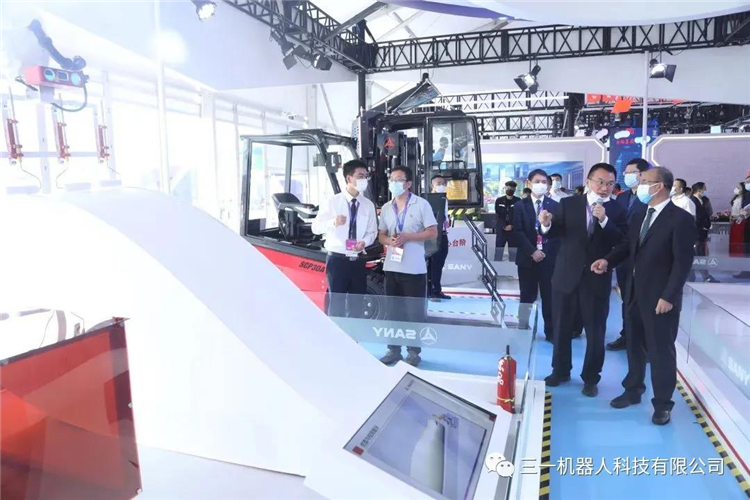 開幕式期間,山西省副省長于英杰、西藏自治區副主席孟曉林等來到三一展區,仔細聽取三一機器人科技有限公司總經理郭承志介紹相關情況,并不時詢問項目的技術特點及市場推廣進展。