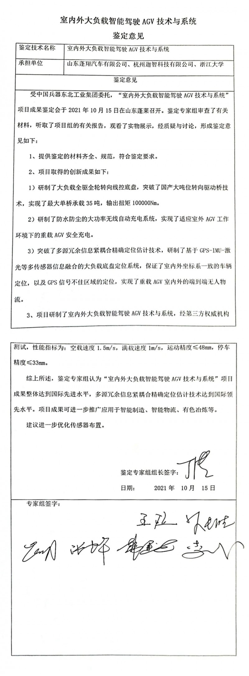 核心提示:丁漢院士領(lǐng)銜的國家級評審團(tuán)對蓬翔汽車重載AGV給出中肯評價。