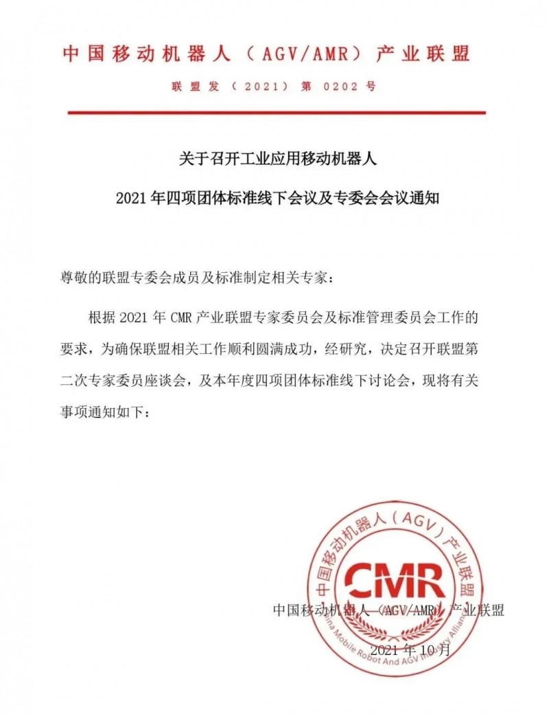 關(guān)于召開工業(yè)應(yīng)用移動(dòng)機(jī)器人2021年四項(xiàng)團(tuán)體標(biāo)準(zhǔn)線下會(huì)議及專委會(huì)會(huì)議的通知