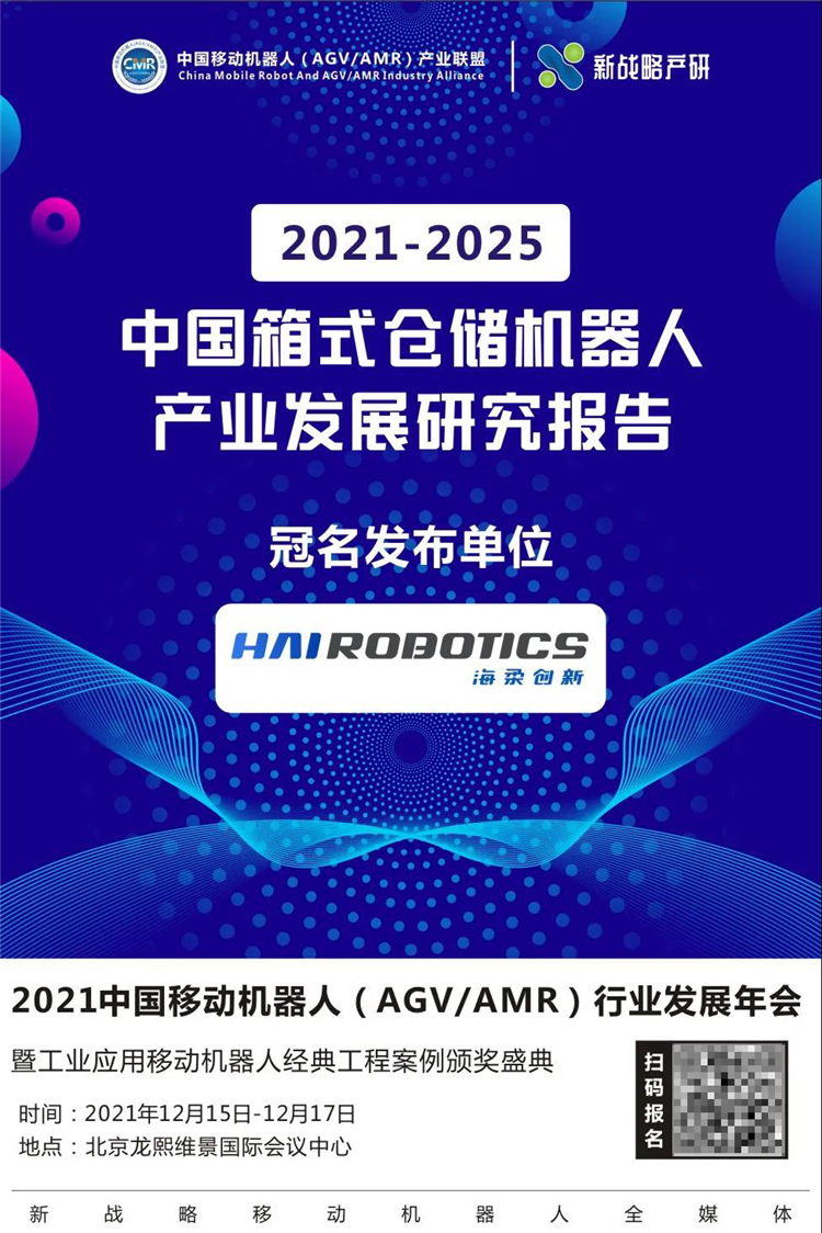 為了進一步探析箱式倉儲移動機器人發(fā)展現(xiàn)狀,2021年12月15-17日,在由中國移動機器人(AGV/AMR)產(chǎn)業(yè)聯(lián)盟主辦的“2021 中國移動機器人(AGV/AMR)行業(yè)發(fā)展年會”上,《2021-2025中國箱式倉儲機器人產(chǎn)業(yè)發(fā)展研究報告》將正式對外發(fā)布!