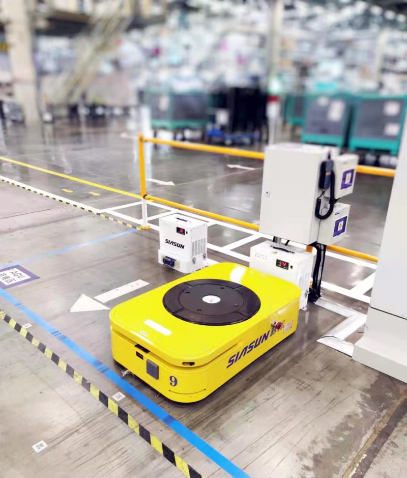 2019年新松機(jī)器人為國(guó)內(nèi)某知名車(chē)企在總裝車(chē)間的儀表線、電池線、門(mén)段揀選線等產(chǎn)線提供數(shù)十臺(tái)物流配送AGV。項(xiàng)目在實(shí)施過(guò)程中,原定選用的是激光SLAM導(dǎo)航,由于部分生產(chǎn)線邊特征點(diǎn)不明顯,環(huán)境特征變化太多,導(dǎo)致SLAM導(dǎo)航精度不高,定位不準(zhǔn),影響了使用效率。經(jīng)過(guò)分析后,新松輔以紋理導(dǎo)航解決了因局部區(qū)域特征變化較大而產(chǎn)生的問(wèn)題。在特殊路段,通過(guò)對(duì)現(xiàn)場(chǎng)地面紋理的拍攝,與AGV本體已有紋理模型構(gòu)圖進(jìn)行比對(duì),從而確定精確位置,提高了現(xiàn)場(chǎng)的導(dǎo)航精度和定位精度,滿足了客戶的使用效率要求。