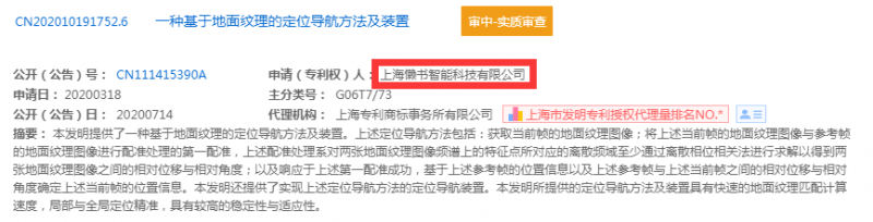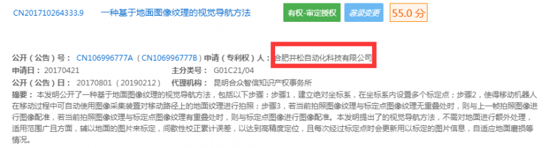 新戰(zhàn)略移動(dòng)機(jī)器人產(chǎn)業(yè)研究所通過(guò)專(zhuān)利檢索發(fā)現(xiàn),目前該導(dǎo)航方式為發(fā)明專(zhuān)利,主要專(zhuān)利人為合肥井松自動(dòng)化科技有限公司與上海懶書(shū)智能科技有限公司所有,發(fā)明人均為劉詩(shī)聰。