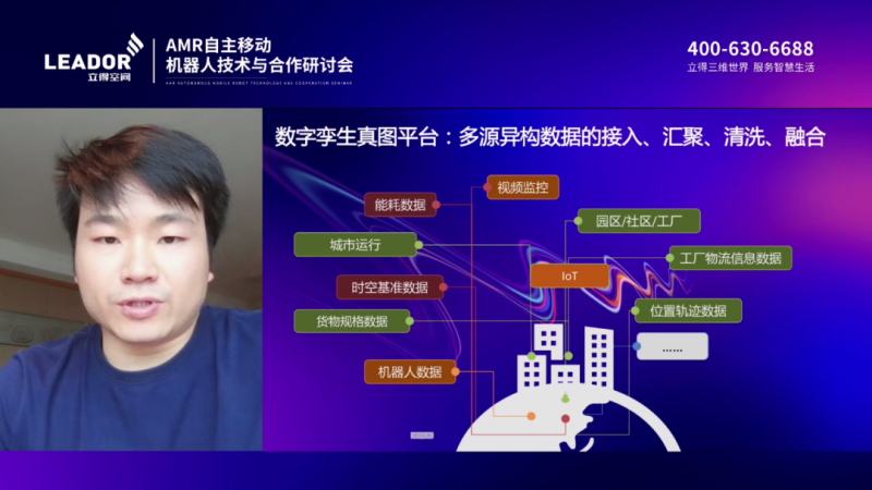 立得空間智慧城市事業(yè)部技術(shù)總監(jiān)黃杰詳細介紹了“三維高精地圖+機器人”技術(shù)架構(gòu)。他提到,立得空間研發(fā)的“真圖“數(shù)字孿生時空數(shù)據(jù)服務(wù)平臺”基于實景三維、高精地圖、物聯(lián)網(wǎng)、仿真、AI、空間網(wǎng)格碼等關(guān)鍵技術(shù),可接入海量多維數(shù)據(jù)、進行匯聚、清洗、融合、管理及可視化,快速構(gòu)建數(shù)字孿生時空大數(shù)據(jù)底座。