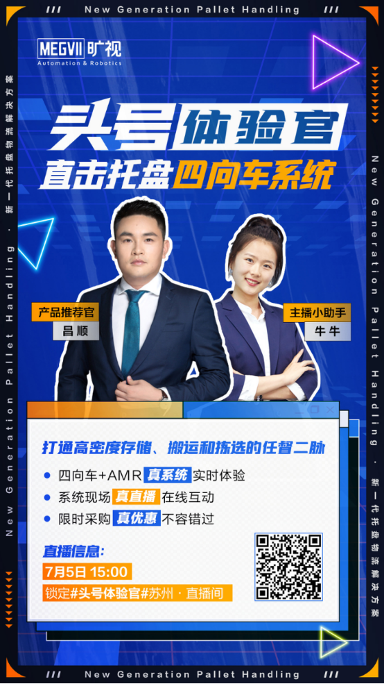 掃描海報(bào)二維碼,預(yù)約智能托盤四向車系統(tǒng)“頭號(hào)體驗(yàn)官”直播——